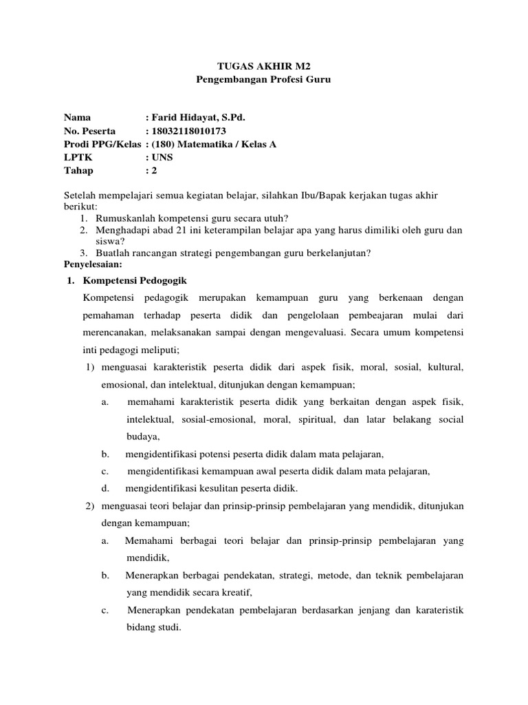 Agribisnis pengolahan hasil pertanian. J awaban tugas akhir modul 2 ppg tahun 2019 tentang pengembangan profesi guruppgsilahan unduh file nya di bawah ini download di sini demikian materi terkait dengan tugas akhir modul 2 pengembangan profesi guru semoga apa yang kami sampaiakn dapat bermanfaat bagi rekan gurupada kesempatan yang akan datang kami bagikan juga tugas akhir modul 3 yaitu tentang pembuatan makalah. Analyze parts of. Jumlah laki laki 20 orang jumlah perempuan 10 orang 2. Tugas akhir tes sumatif. Sukma wijaya skom npm.